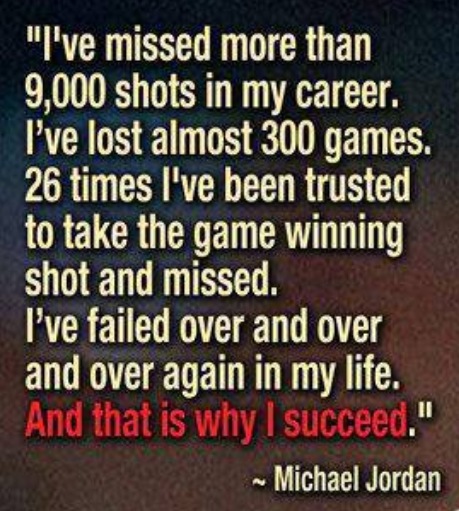 Thank you Molly, very timely… After last years IMLP crushing blow to 8 months of working and training, my attitude was one of self pity and doubt. Debi knows the full story if you’re interested. I read that quote from Michael Jordan last year about a week after the race and got a spot in this years race via the MMRF was fulfills my yearly fund raising requirement. I use my racing to do at least one like project per year. This year is for my wife of 28 years who has had cancer several times.